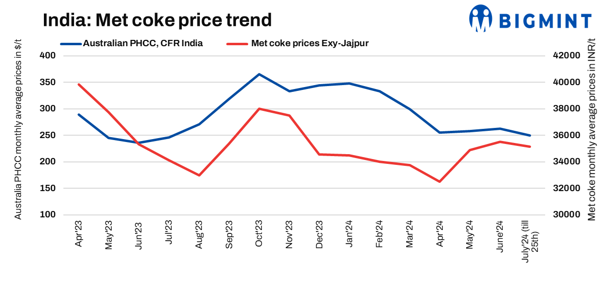 Indian buyers anticipated further price declines amid a downtrend in the coking coal market with ample supply at Indian ports. Also, end-users were heard delaying coke procurement, expecting prices to drop further.