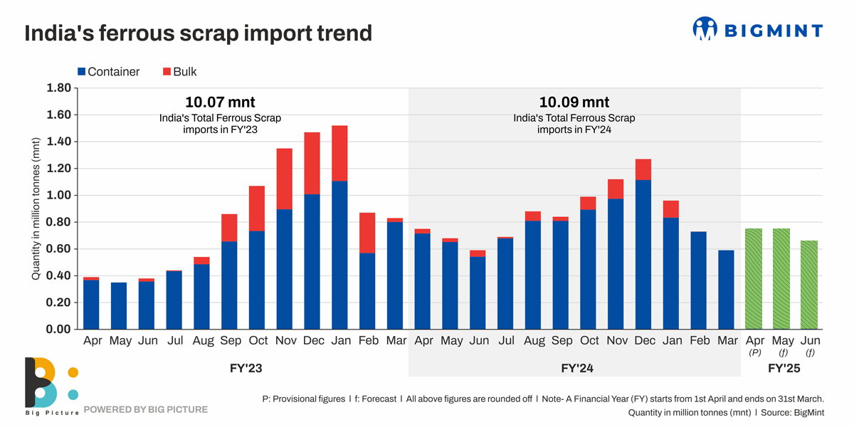 Morning Brief: Indian scrap buyers are again showing a propensity to buy bulk cargoes after a long hiatus. Data maintained with BigMint shows imports of bulk ferrous scrap cargoes had dropped sharply from March 2023, and had remained depressed throughout last fiscal (FY’24) at a mere 0.75 million tonnes (mnt) compared to a far heftier 2.30 mnt in FY’23.