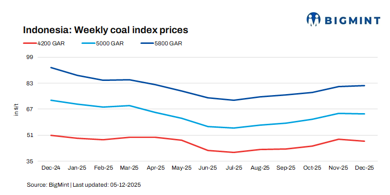 Indian portside prices of Indonesian thermal coal held largely unchanged w-o-w as of 05 December 2025, with firmer global benchmarks providing a clear price floor. The steady international outlook discouraged domestic sellers from offering heavy discounts, resulting in muted spot activity and controlled price movements across major ports.