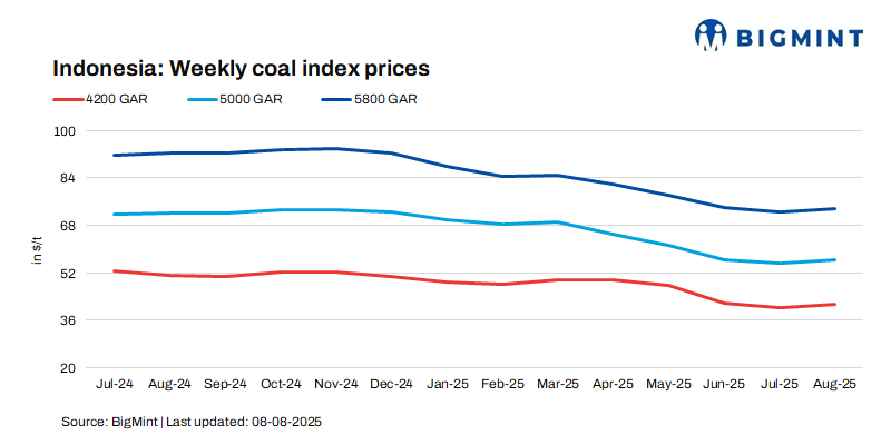 The Indian portside market for Indonesian thermal coal remained largely stable during the week ending 8 August 2025, with only minor adjustments observed in select low-grade segments. According to the latest assessment by BigMint, prices across most grades and ports registered minimal week-on-week (w-o-w) variation, reflecting a balanced supply-demand environment in the domestic market.