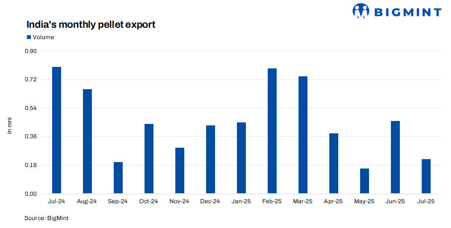 An Indian manufacturer recently concluded an export deal for 50,000 t of pellets (63%Fe, 1.5-2%Al2O3). The deal was heard concluded at $111-112/t FOB India, as per sources. Meanwhile, another deal was heard from a west India-based supplier for pellet (Fe63.5%, 1.5% alumina) export (80,000 t) for last week for Sept loading.