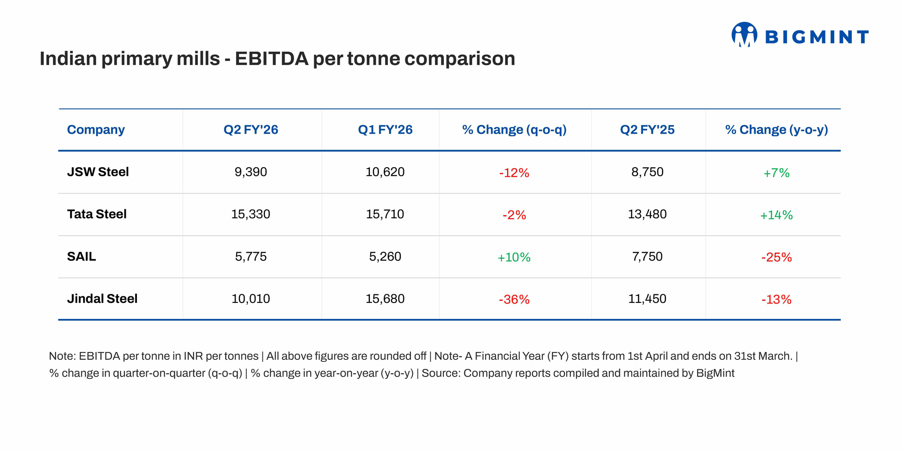 Morning Brief: In the Jul-Sep’25 quarter of the current fiscal (Q2FY’26) the primary steel mills in the country posted mixed results, with most of the Tier-1 companies reporting declines in EBITDA per tonne as domestic steel prices continued to trend down throughout the quarter amid monsoon blues, weak global sentiments and increasing inventories.