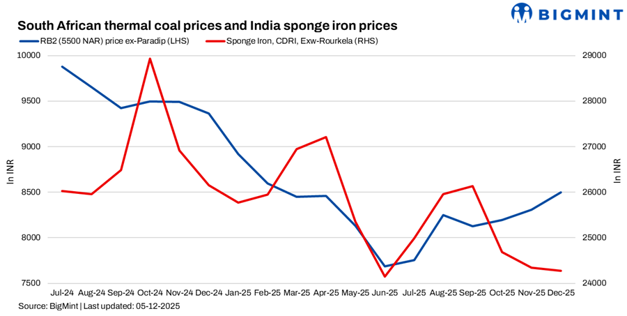 Some sellers withheld stock in anticipation of further hikes, with expectations of continued firm offers through Feb amid vessel shortages for Jan-Mar deliveries. A 5,000 t deal was concluded at INR 8,700/t ex-Mangalore, while another 5,000 t of RB2 coal was booked at INR 8,400/t ex-Mangalore. Export offers also strengthened, with RB2 rising to $76/t and RB3 to $60.5/t, up $1-2 w-o-w.