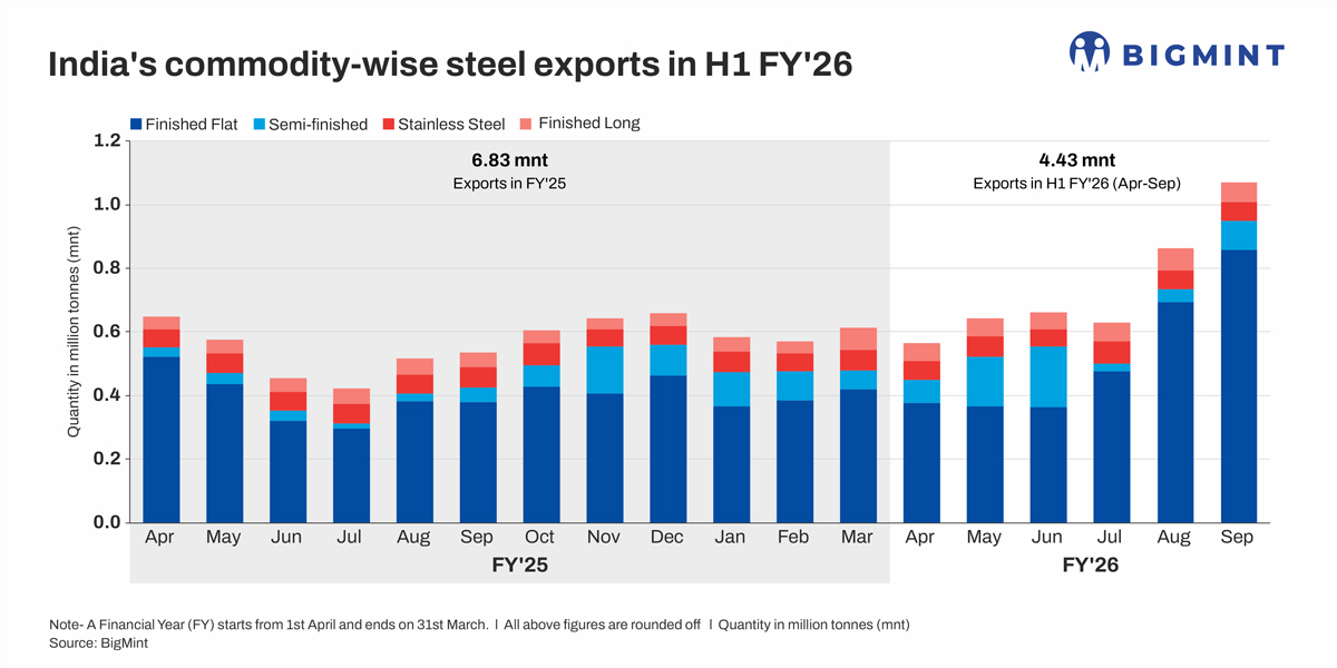 India’s commodity-wise steel exports in H1 FY’26
