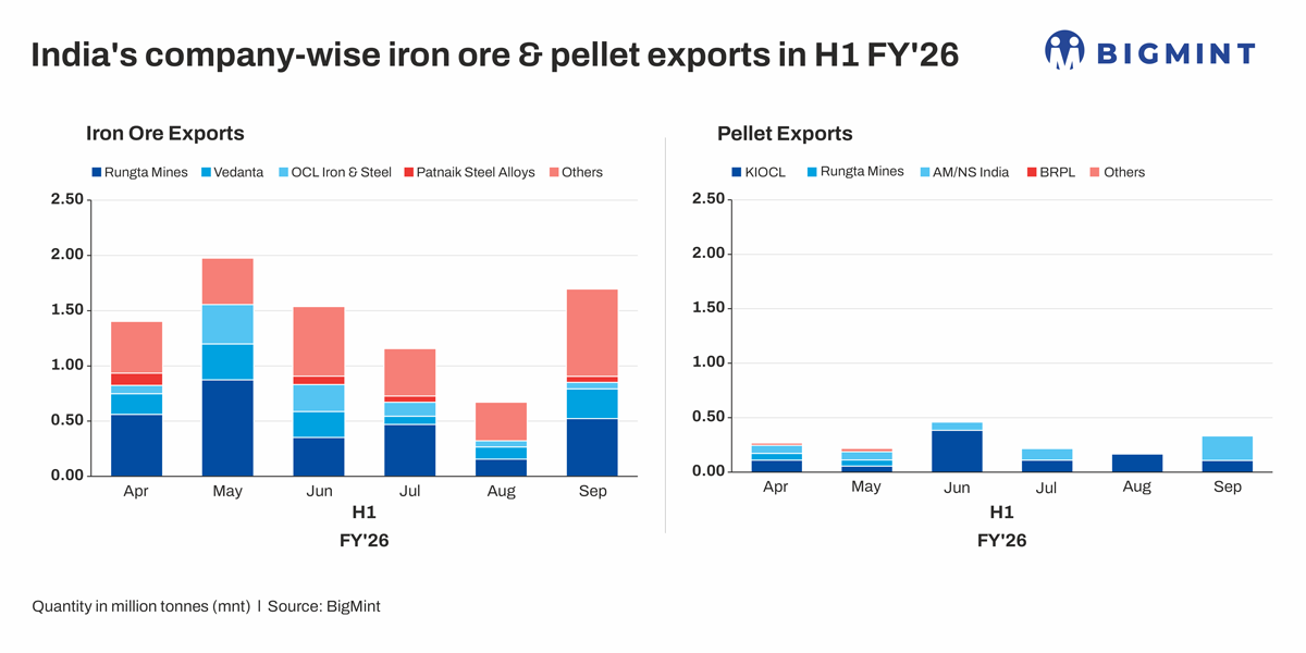 India’s company-wise iron ore pellet exports in H1 FY’26