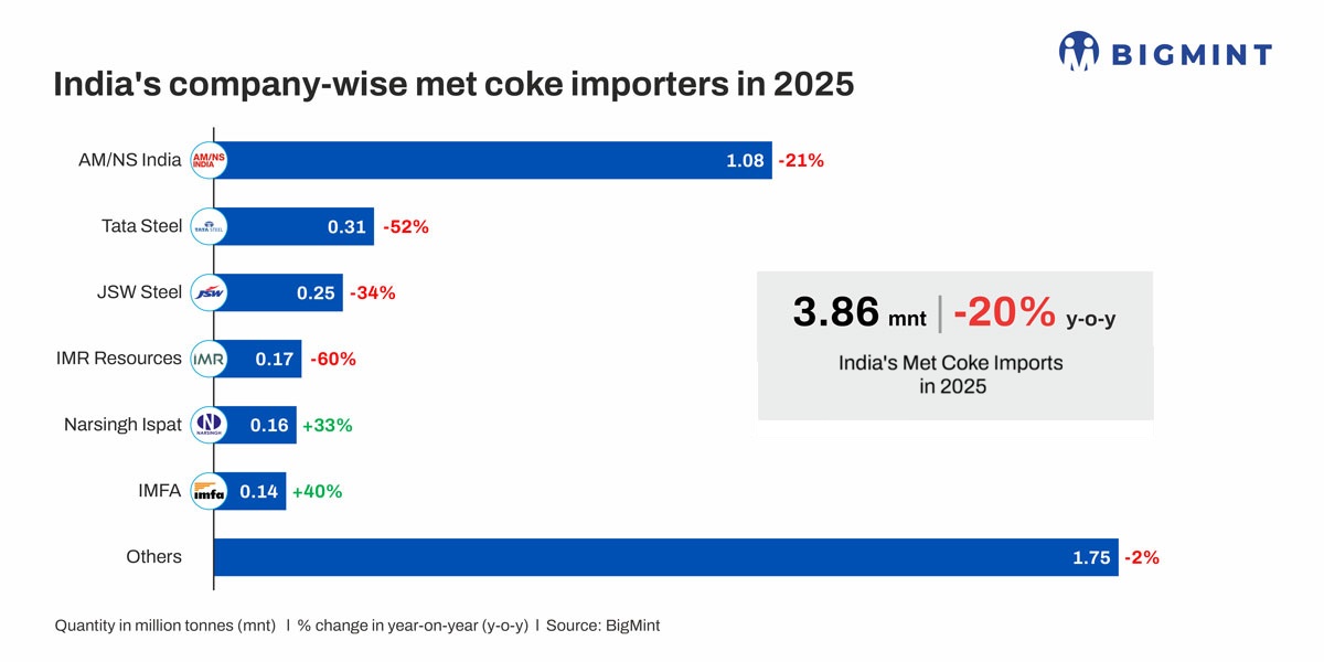 AM/NS India was the largest importer at 1.08 mnt, with intake declining 21% y-o-y. Tata Steel reduced its imports by 52% to 0.31 mnt and JSW Steel by 34% to 0.25 mnt. Indonesia was the largest supplier in CY’25 at 1.76 mnt, with a fall of 16% y-o-y. Similarly, imports from Poland declined by 1% to 0.67 mnt.