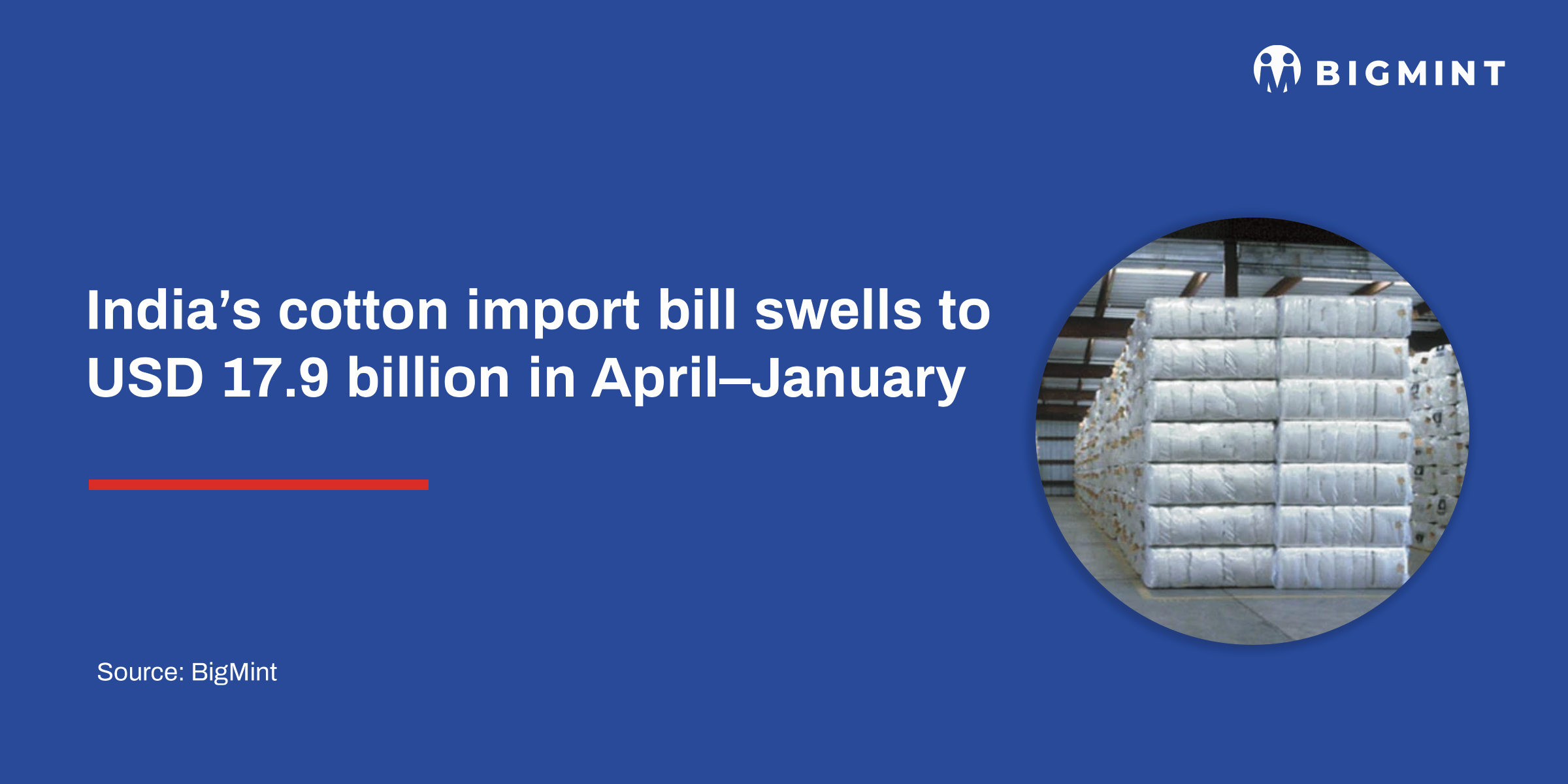 India’s cotton import bill touched about USD 17.9 billion during April-January of the current financial year, as reported. This sharp rise signals a major shift in India’s cotton trade balance. Traditionally a net exporter, India is increasingly turning to overseas markets to meet raw material requirements. Trade data and related reports from agencies such as Reuters and the USDA indicate that imports for the full 2025-26 season could reach around 4.5-5 million bales, one of the highest levels in recent years.