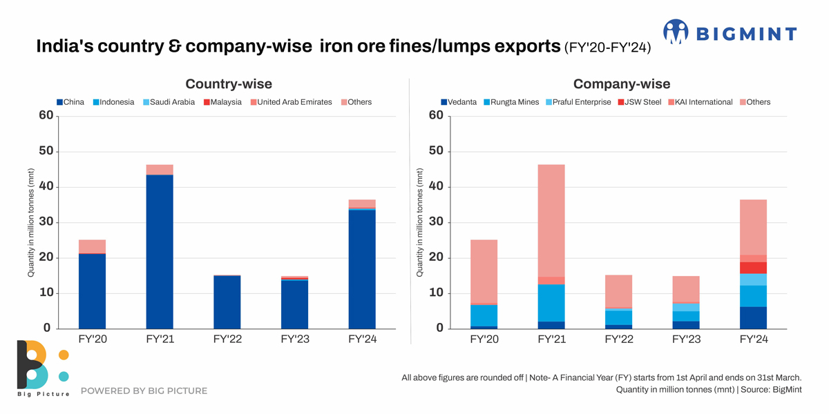 India’s country and company-wise iron ore fines/lumps exports (FY’20-FY’24)