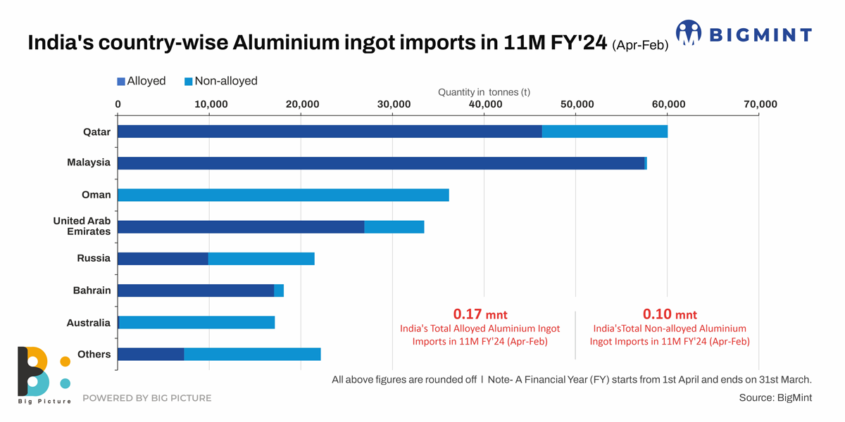 India’s country-wise Aluminium ingot imports in 11M FY’24 (Apr-Feb)