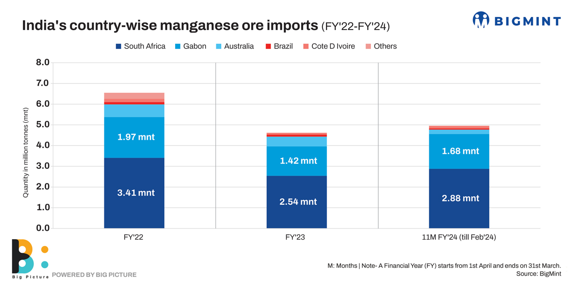 India’s country-wise manganese ore imports (FY’22-FY’24)