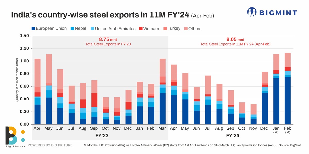 India’s Country-wise Steel Exports in 11M FY’24 (Apr-Feb)