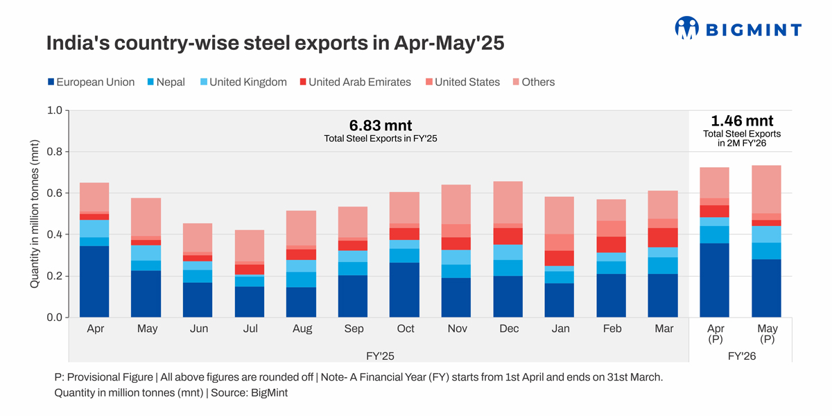 India’s country-wise steel exports in Apr-May’25