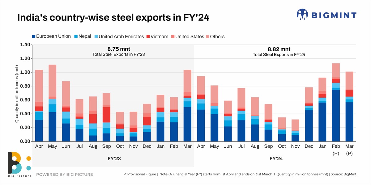 India’s country-wise steel exports in FY’24