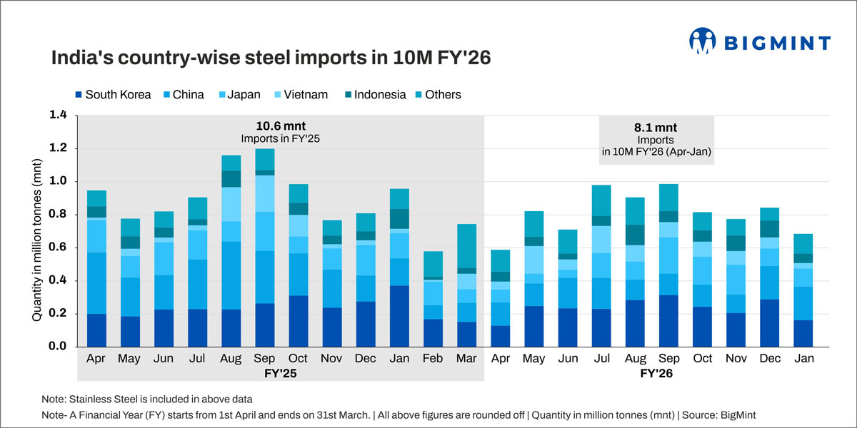 India’s country-wise steel imports in 10M FY’26