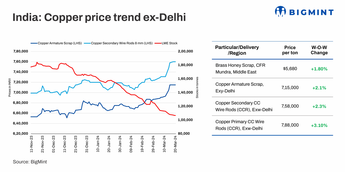 India’s domestic, imported copper prices rise w-o-w following global trends