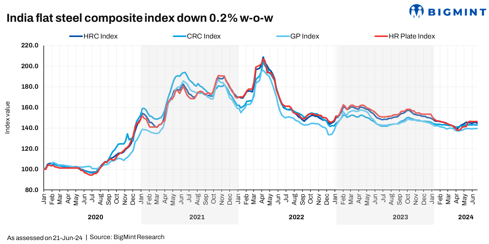 Flats were more on an even keel last week, Benchmarked trade-level hot rolled coil (HRC) prices remained stable w-o-w at INR 53,900/t ($645/t) and cold rolled coils, at INR 60,300/t ($722/t). Flat steel falling demand and sluggish sales have been the bane for quite some time now.
