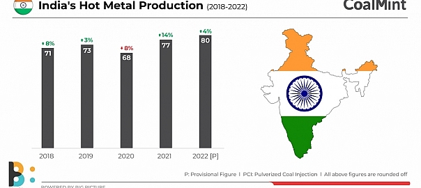 India’s crude steel production increased by around 6% y-o-y to over 124 mnt. Similarly, hot metal production also increased by 4% to 80 mnt from 77 mnt in 2021.