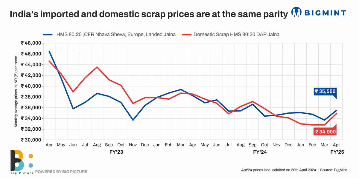 Indias imported and domestic scrap prices are at the same parity (Apr’22-Apr’24)