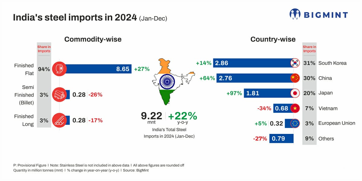 These deals underscore the continuing demand for imported HRC in the Indian market, even as the country grapples with a surge in overall steel imports. The influx of imports has become a major challenge for the Indian steel industry, with the country ending 2024 as a net importer. Total steel imports reached 9.22 million tonnes (mnt) in CY’24, significantly outpacing exports of 7.60 mnt.
