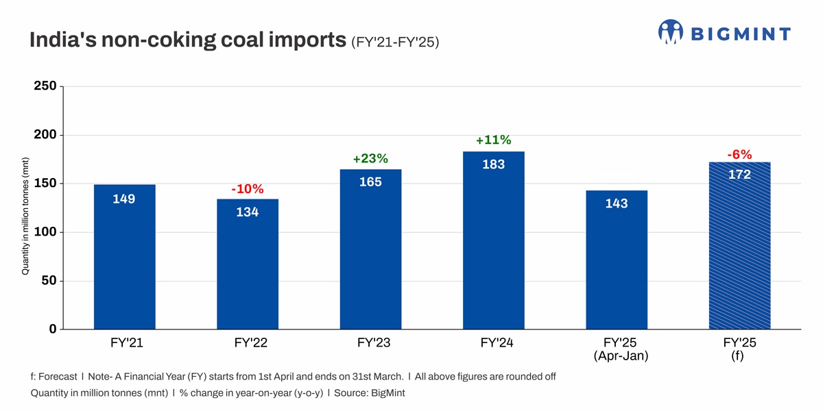 India’s imports of non-coking coal to drop around 6% y-o-y in FY’25 – BigMint estimates