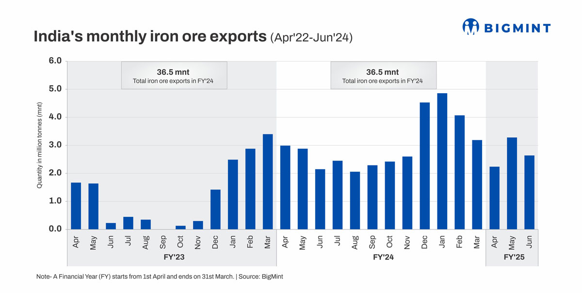 - JSW, Karnataka miners raise exports: JSW Steel’s export volumes witnessed a sharp growth of 3.41 mnt in H1CY’24 against a mere 0.41 mnt in the year-ago period. Additional volumes were reported exported from Karnataka, with MSPL and A One Steel at around 0.29 and 0.28 mnt, respectively, supporting overall export volumes.