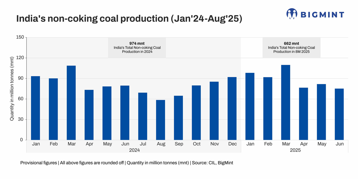 India’s non-coking coal production (Jan’24-Aug’25)