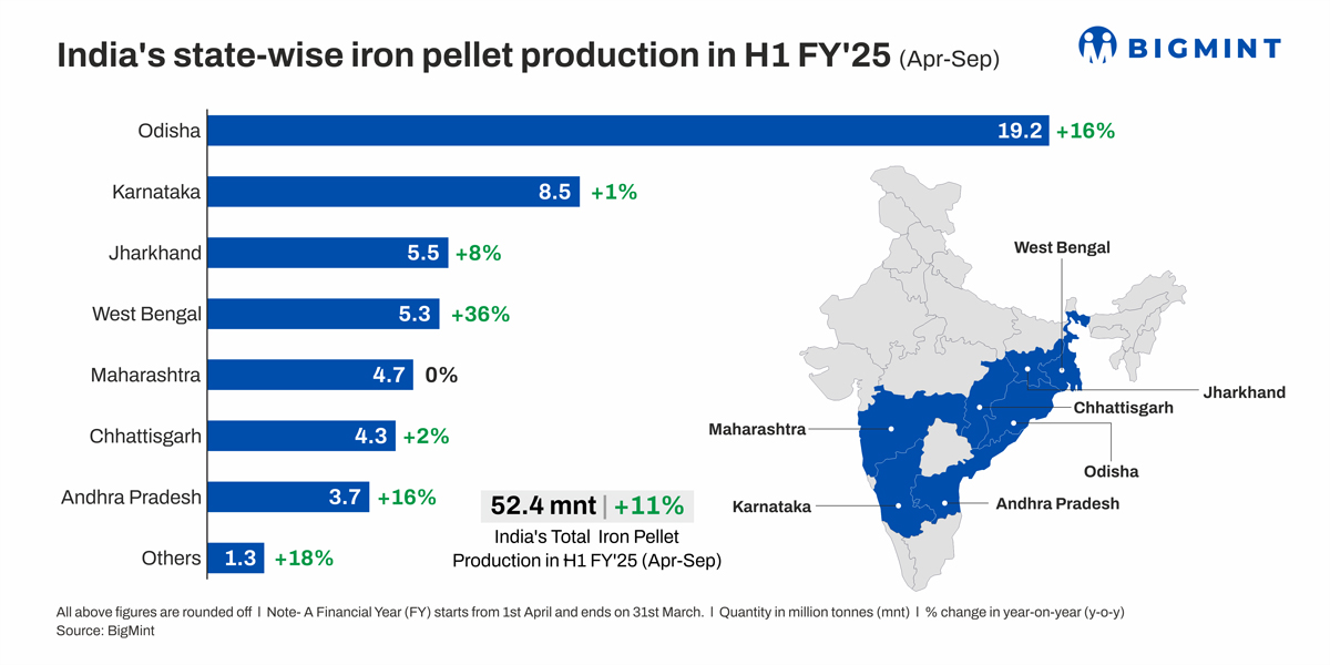 Morning Brief: Production of iron ore pellets in India during April-September (H1) of the current fiscal year (FY’25) stood at over 52 million tonnes (mnt), an increase of 11% y-o-y compared with 47.2 mnt in H1FY’24.