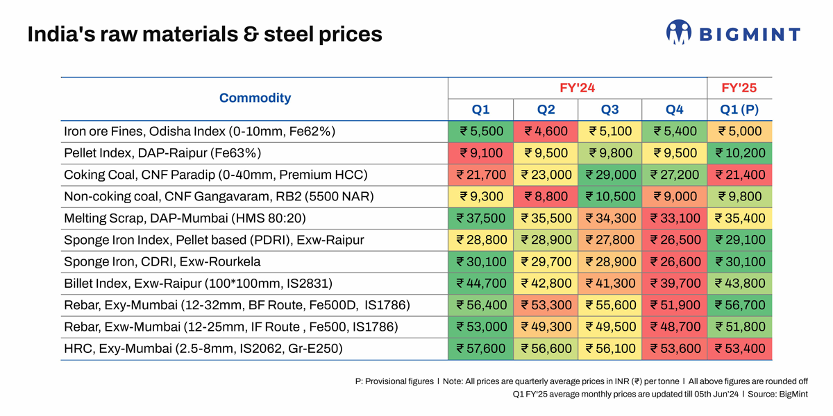 India’s raw materials & steel prices