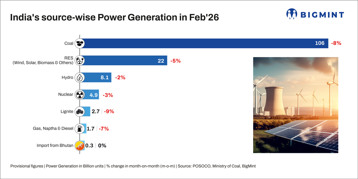 India is set to experience severe heat waves during March-May, with temperatures in northern and southern peninsular India already at above-normal levels. A key factor behind lower imports in 11MFY’26 was the milder summer and a prolonged monsoon, which had reduced cooling demand.