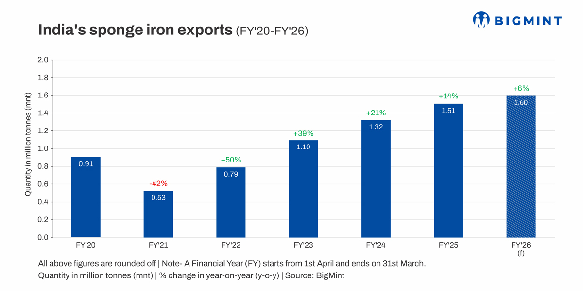 After a robust showing in 2024, sponge iron exports to Nepal and Bangladesh remained muted in 2025. Export volumes in April and May 2025 fell by over 30% y-o-y, impacted by declining prices and sluggish finished steel demand in neighbouring markets. Buyers remained cautious amid sufficient local availability of semi-finished steel, reducing their reliance on Indian sponge iron.
