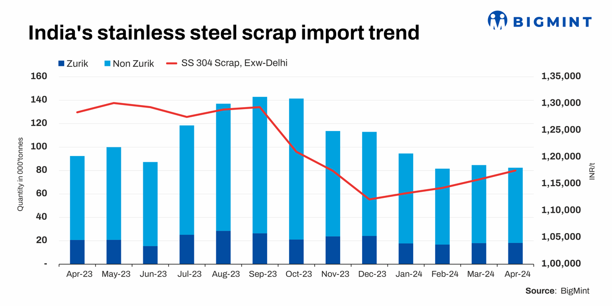 India imported approximately 0.70 mnt of stainless steel slabs from January 2023 to April 2024, which significantly impacted scrap requirements.