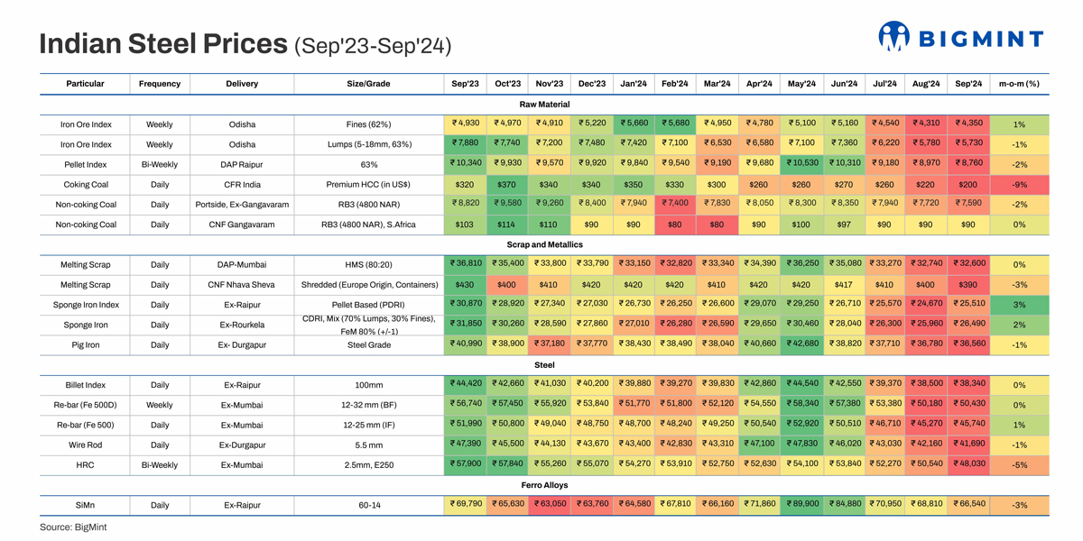 India’s steel, raw material prices a mixed bag in Sep’24; Will prices uptrend in Oct?
