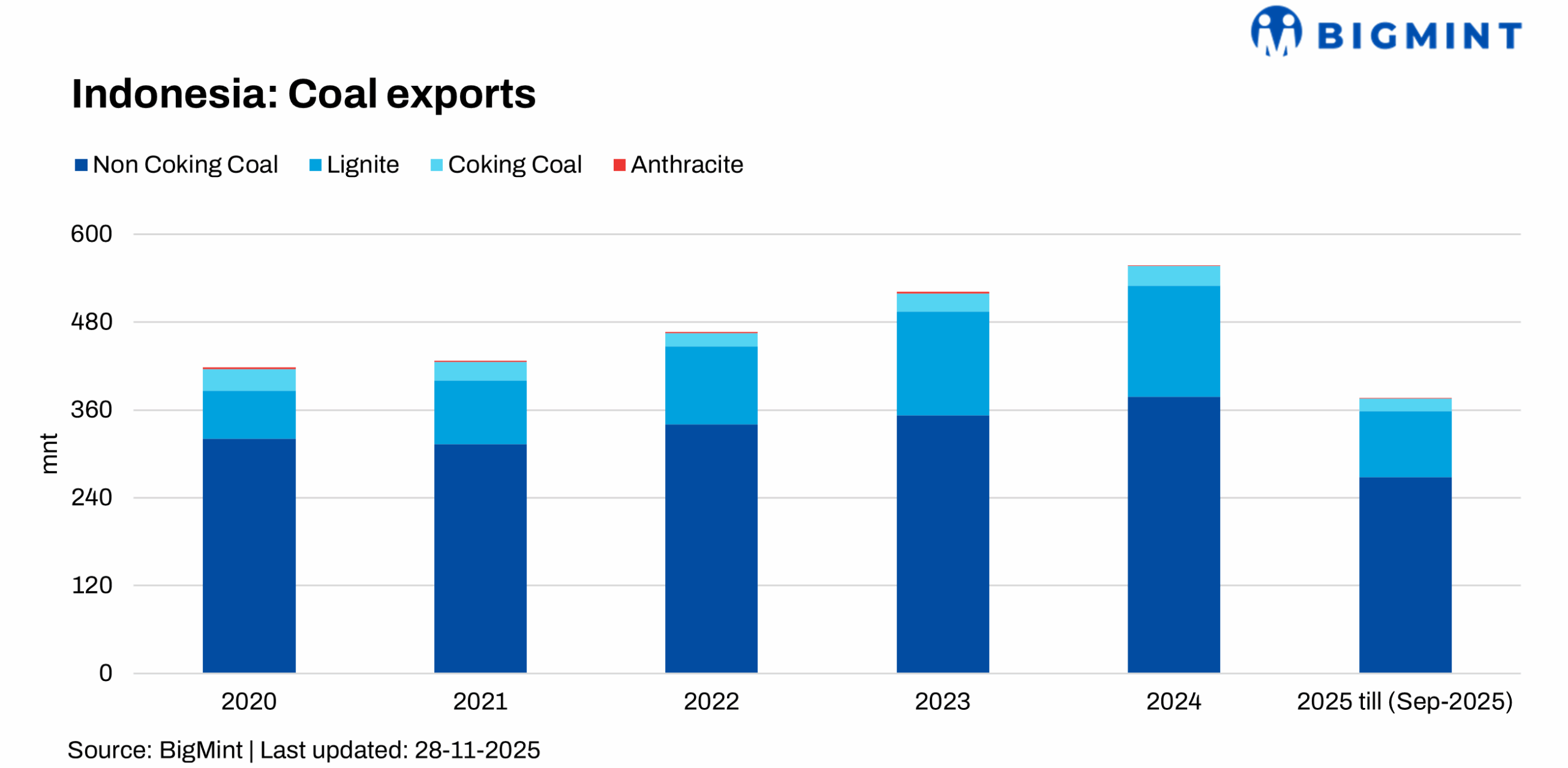 Indonesia, the world’s largest thermal coal exporter, exported 375.61 million tonnes (mnt) of coal in the first nine months of this year, Statistics Indonesia data showed. China and India continued to dominate purchases, though their slower buying has weighed on export volumes and prices, dragging down Jakarta’s state revenue.