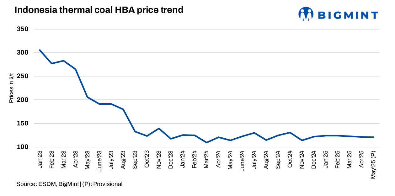 Specifically, the HBA for 6,322 kcal/kg GAR coal (TM 12.26%, sulphur 0.66%, ash 7.94%) – a grade with high CV – was set at $121.15/tonne (t) for the first half of this month, up by 0.8% from $120.2/t issued on 15 April.