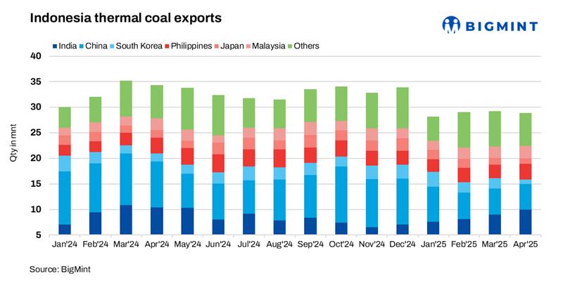 Indonesia: Thermal coal exports weaken in Apr’25 as regional demand varies