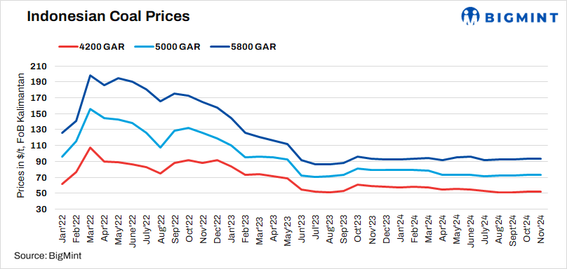 Notably, low power demand in India, and a stable flow of seaborne cargoes under long-term contracts were recorded. Despite this, demand for certain grades of Indonesian coal, particularly low-calorific value (CV), remained steady, as some Chinese power plants sought to blend these with higher-calorific domestic coal during the winter months.
