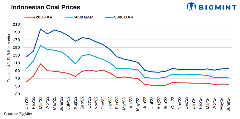 Indonesian coal prices are expected to stay low due to subdued industrial demand, which has not increased post-election because of the arrival of the monsoon in multiple states in India. Besides, China, on account of facing rains and high port inventory is expected to have low demand in near term.
