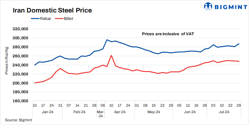 - Billet prices fell by 500 Rial/kg to 248,500 Rial/kg as against 24 Jul.