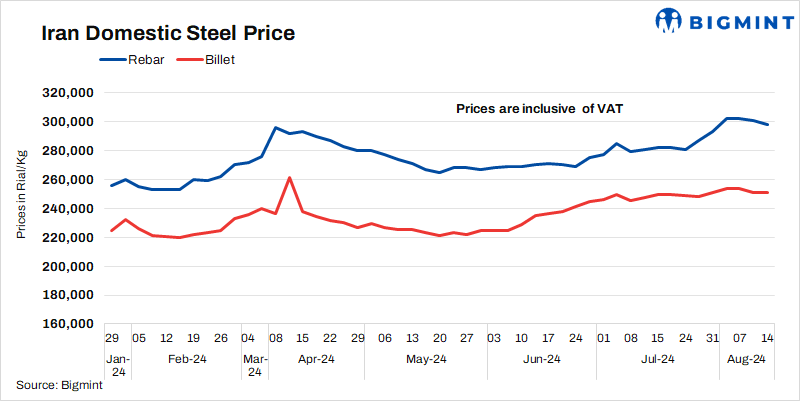 Iran’s domestic billet prices remained unchanged this week despite supply concerns amid increasing electricity, gas, and water crisis. Followed by pressure in billet prices, rebar prices also fell, sources informed BigMint.