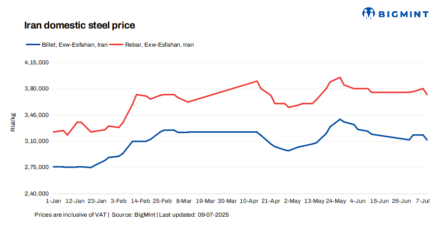 • Rebar priced at 376,000 Rial/kg on 9 Jul’25.