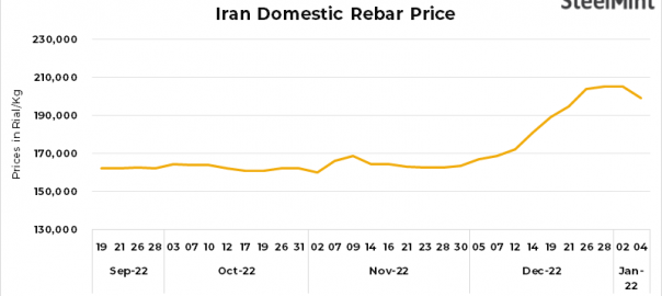 • Steel billets prices fell by 7,000 Rial/kg to 169,500 Rial/kg as against 2 Jan’23.