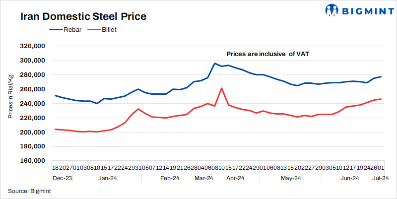 Iran’s domestic billet prices witnessed an increase amid active demand. Following the hike in billet prices and higher exchange rate, rebar prices also increased, sources informed BigMint.