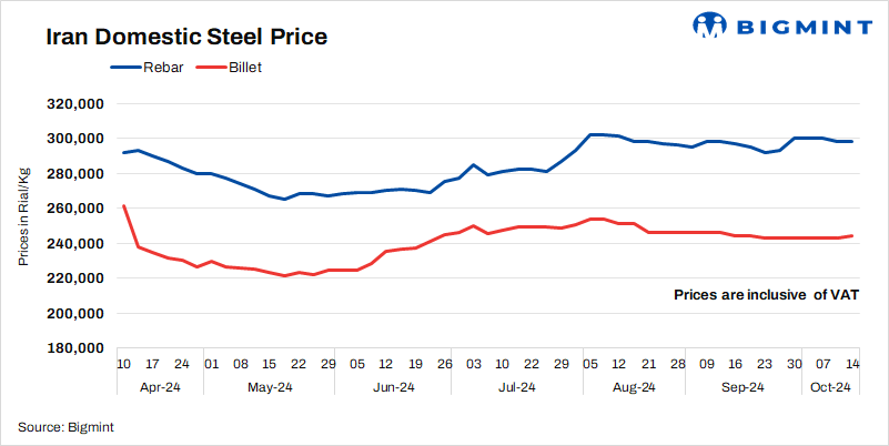 • Billet prices rose by 1,000 rial/kg to 244,000 rial/kg on 14 Oct’24 as against 9 Oct’24.