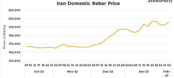 - Steel billets prices rose by 4,000 Rial/kg to 185,500 Rial/kg against 1 Feb’23.