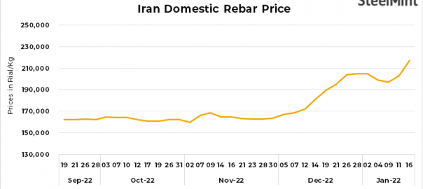 • Steel billets prices rose by 9,000 Rial/kg to 177,500 Rial/kg as against 11 Jan’23.