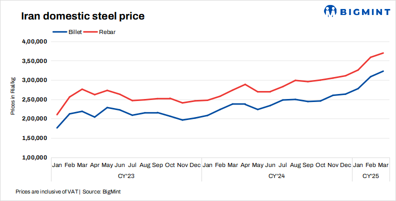- Billet prices fell by 3,000 rial/kg to 321,500 Rial/kg on 5 Mar’25 against 3 Mar.