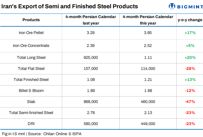 Meanwhile, the country’s DRI export volumes stood at 449,000 t, down by around 23% y-o-y due to electricity restrictions and absence of buyers in the market.