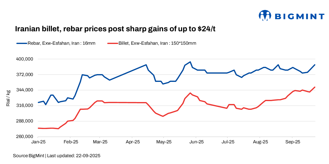 Iranian billet, rebar prices post sharp gains of up to 10,000 rial/kg ($24/t)