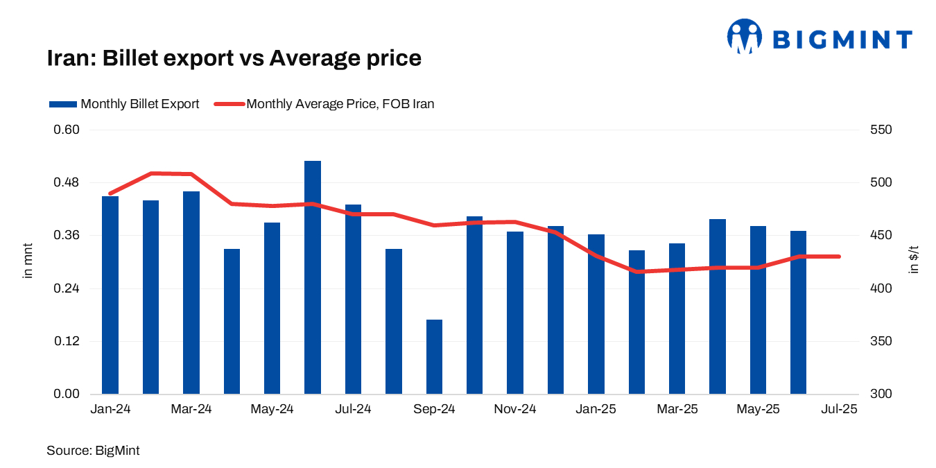 • Iranian steelmaker Khouzestan Steel Complex (KSC) has concluded an export tender for 60,000 t of billets at $430/t FOB, with shipment scheduled for late Oct’25, sources informed BigMint.