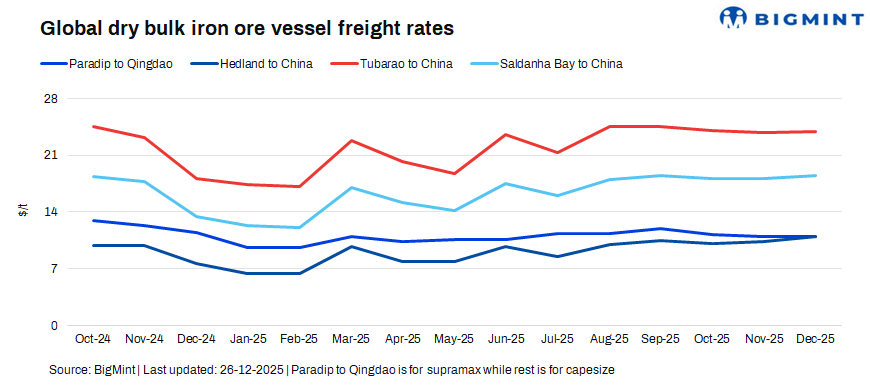 Dry bulk freights across key iron ore routes showed mixed trends w-o-w on 26 December, reflecting uneven cargo demand, ample tonnage availability, and limited fixture activity due to the holiday season, as charterers largely stayed on the sidelines towards the year-end.